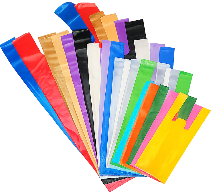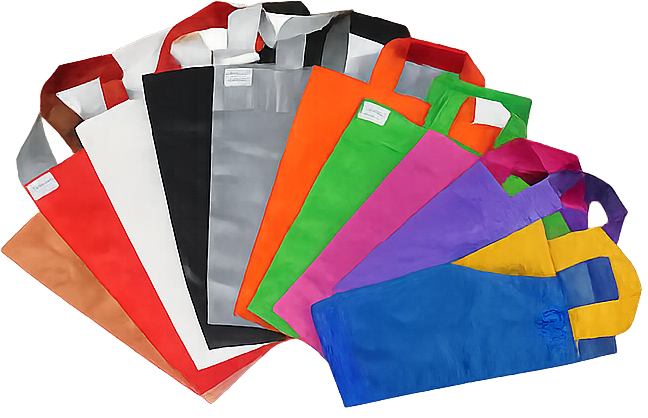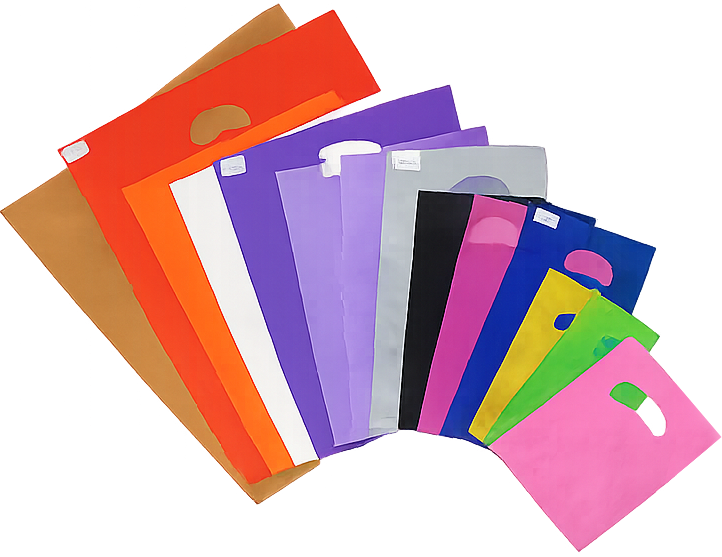 As sacolas alça vazada estão disponíveis tanto lisas (sem impressão) quanto impressas.